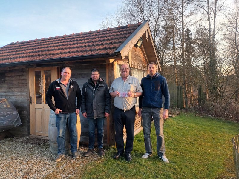 Das Foto zeigt die Spendenübergabe: von links Gerhard Madl, Christian Steinbrunner, Josef Hofbauer und Karl-Heinz Kolbinger