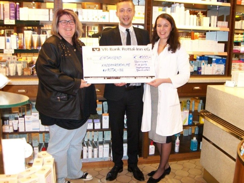 „In der Apotheke sind wir natürlich öfter mit dramatischen Schicksalen konfrontiert und sehen somit deutlich, durch welch schwere Zeiten die Betroffenen und deren Familien oft gehen müssen“, so Strasser und Fahrner. Karin Peklo, Beisitzerin der Kinderkrebshilfe Rottal-Inn, selbst Kundin in der Apotheke, kam mit den beiden ins Gespräch bezüglich der Arbeit und Leistungen des gemeinnützigen Vereins. Interessiert informierten sich Johannes Strasser und Dr. Nathalie Fahrner über den Verein, schauten die Homepage genau durch und beschlossen, den Verein zu unterstützen.
