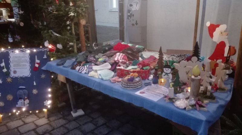 Am Pfarrkirchner Weihnachtsmarkt konnten wir Strickwaren zu Gunsten unseres Vereins verkaufen. Die Stadt erlaubte uns, einen Tisch und eine Bank kostenlos aufzustellen, so dass der Verein wirklich jeden Euro des Verkaufs einnahm.