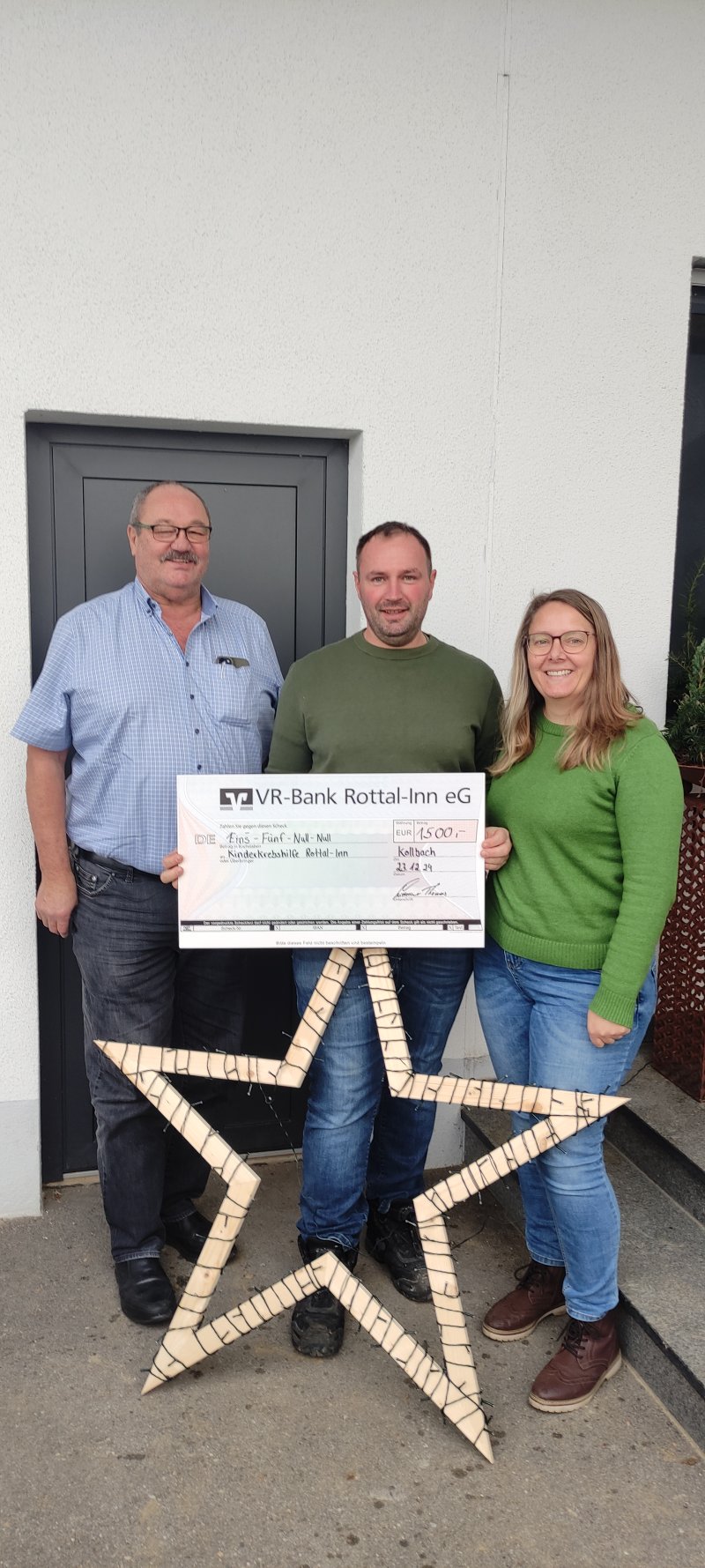 Den Erlös aus den Verkauf rundeten die Limmers noch auf und überreichten nun die so erwirtschafteten 1500 € an Josef Hofbauer von der KinderkrebsHilfe Rottal-Inn.