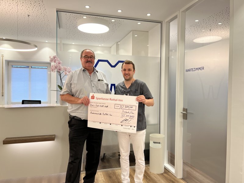 Hier ist er überzeugt, dass die Hilfe an der richtigen Stelle ankommt und so nahm er wie schon im Jahr 2022 Kontakt zu Josef Hofbauer für eine Spendenübergabe auf. Hofbauer erläuterte, dass momentan 47 Kinder mit Krebserkrankung sowie deren Familien betreut werden. Tobias Altmannshofer überreichte 2500 € an den 1. Vorsitzenden. Diese Spende sei aber nur durch die harte Arbeit seines Praxisteams möglich, so Altmannshofer. Er hofft, damit besonders in der jetzigen Vorweihnachtszeit etwas Glück für die Kinder weitergeben zu können.