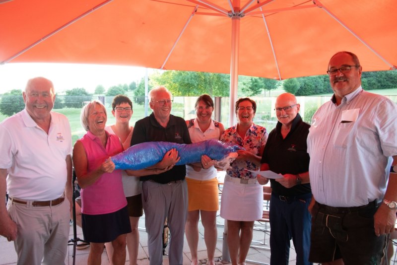 Die Siegerehrung eröffnete Urflight-Präsident Hans Jocham. Er lud die Schirmherrin Beate Brunner ein, die erst im letzten Jahr vorgestellte “Urflight-Musi” zu dirigieren – was die Schirmherrin auch tat, und zwar mit Bravour. Dann aber ging Jocham auf Sinn und Zweck des Turniers ein: “Einmal im Jahr etwas tun, um denen zu helfen, die sich selbst vielleicht nicht helfen können”. Dass es sich beim Urflight um Spätberufene handelt, daraus machte der Präsident keinen Hehl. Aktuell sei Bruno Weiß mit stolzen 83 Jahren der älteste Akteur, aber immer noch fit. Captain Max Enggruber dankte den Teilnehmern für das soziale Engagement.