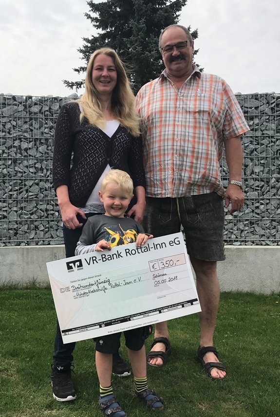 Das Foto zeigt die Spendenübergabe: von links Martina Sperl mit Sohn Maximilian und Josef Hofbauer.