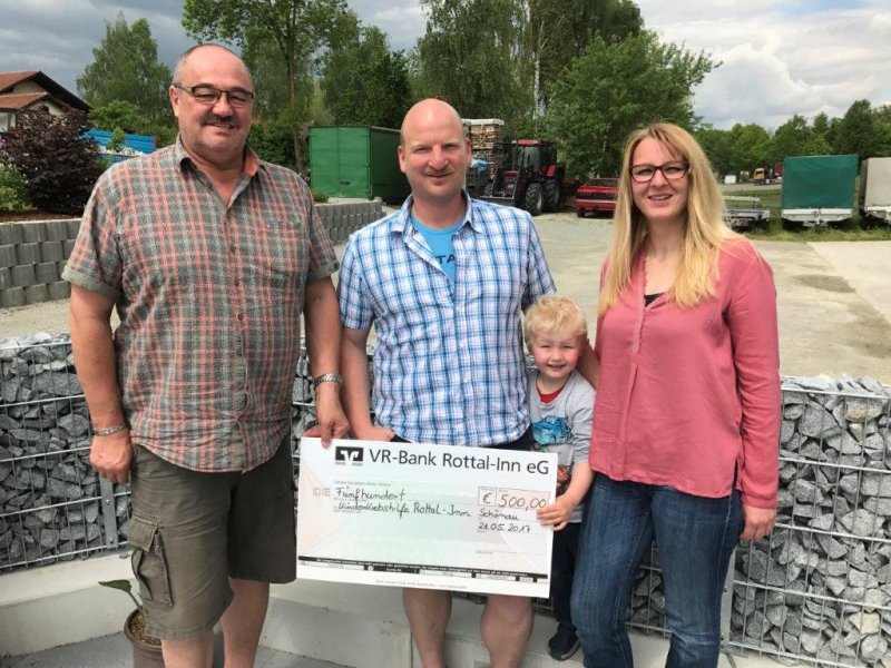 Das Foto zeigt die Spendenübergabe: von links Josef Hofbauer, Bernhard Sperl, Maximilian und Martina Sperl